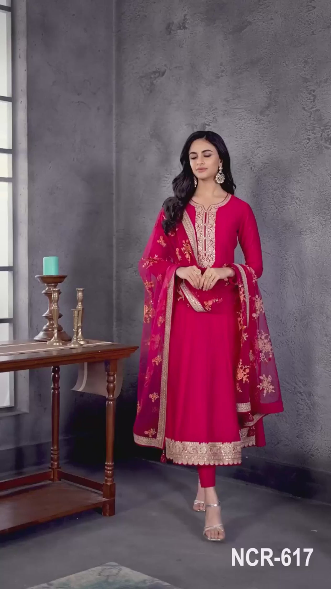 Celebrate Femininity In Taruni’s Pink Silk Anarkali Set, Matched With A Net Dupatta And Opulent Zari-Sequence Craftsmanship.