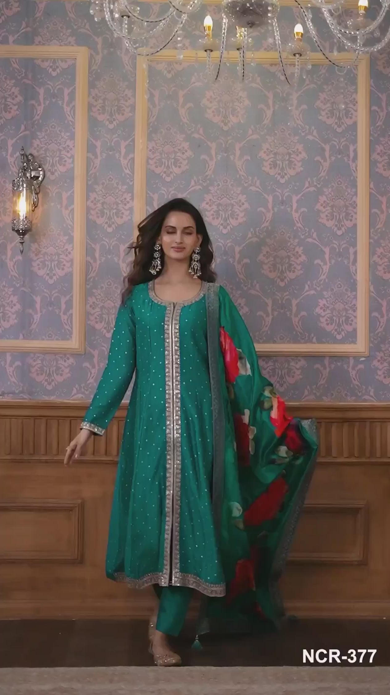 Twirl In Taruni’s Rama Green Silk Anarkali Set, Detailed With Rich Zari And Sequence Work To Leave A Lasting Impression.